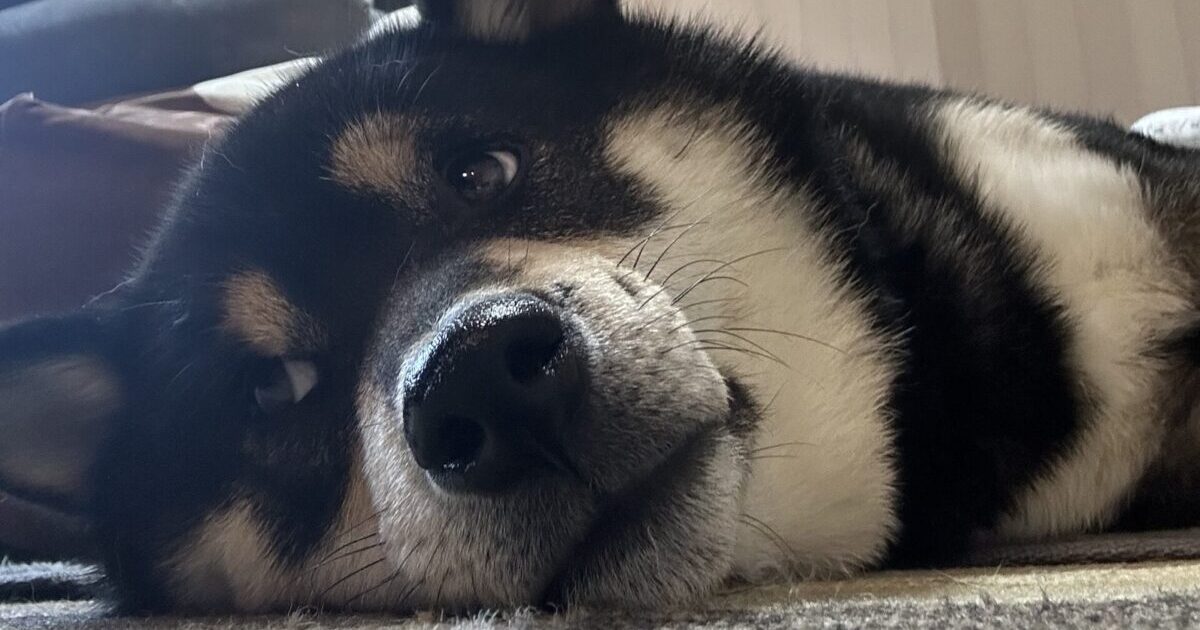 なかなか起き上がらない飼い主にしびれを切らし、