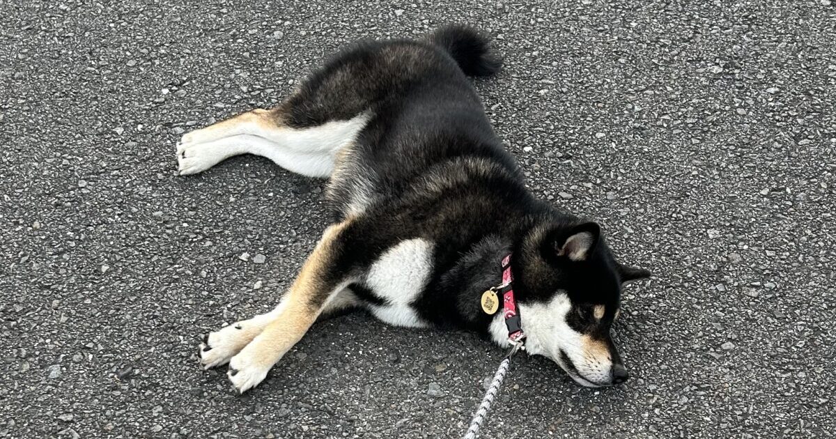 日記 黒柴ごまちの休日朝さんぽ|公園でまったり拒否柴